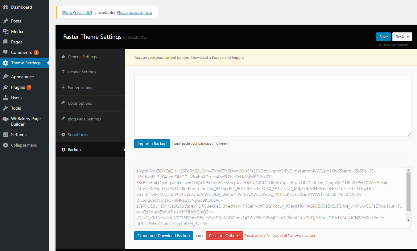 - Now you have to import the Dental Options as like the demo. Navigate to ‘Theme Settings > Backup’. Then copy-paste the backup string here and click on the Import a Backup button. You will find the backup string in the options.txt file.